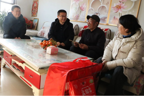 李德宏副會長一行還走訪慰問了高臺縣新壩鎮(zhèn)3戶困難群眾,每戶送去1000元的慈善救助金和1床棉被,給他們帶去了黨和政府以及社會各界愛心人士的溫暖和關(guān)懷。在困難群眾家中,李德宏與受助群眾面對面促膝交流,詳細了解他們家庭中的生產(chǎn)生活情況,鼓勵他們堅定信心,積極樂觀面對眼前困難,努力創(chuàng)造幸福美好生活。同時,叮囑鎮(zhèn)村干部及民政部門負責人,要時刻把困難群眾的冷暖放在心上,用心用情落實好各項民生保障政策,精準對接群眾需求,切實為困難家庭排憂解難,全力做好特殊群體的關(guān)愛幫扶工作,確保他們度過一個歡樂、祥和、溫暖的新春佳節(jié)。